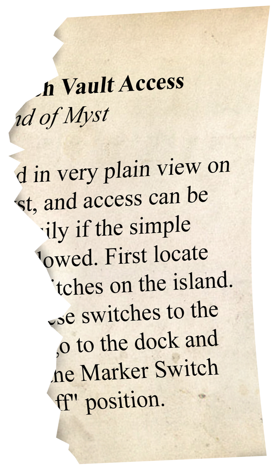 Marker Switch Vault Access, Island of Myst